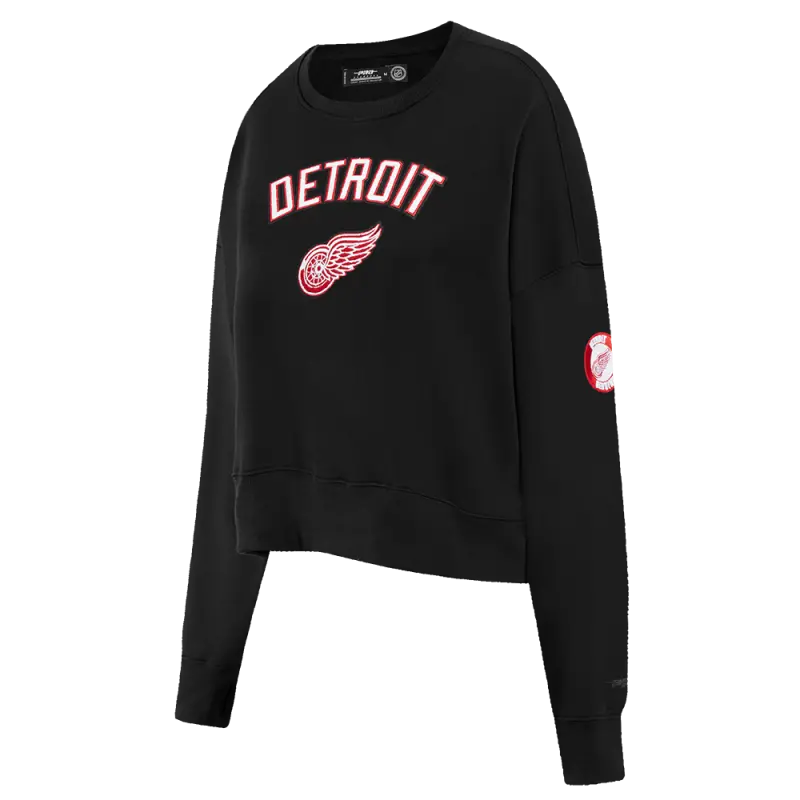NHL DETROIT RED WINGS CLASSIC WOMEN’S FLEECE CREWNECK (BLACK)