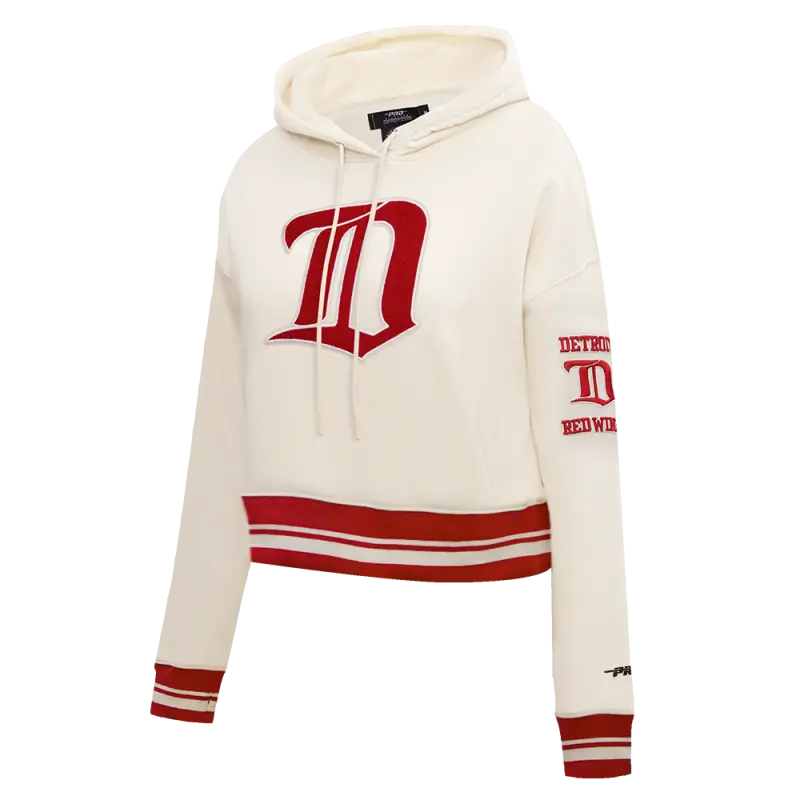 NHL DETROIT RED WINGS RETRO CLASSIC WOMEN’S RIB CROPPED PULLOVER HOODIE (EGGSHELL\/ RED)