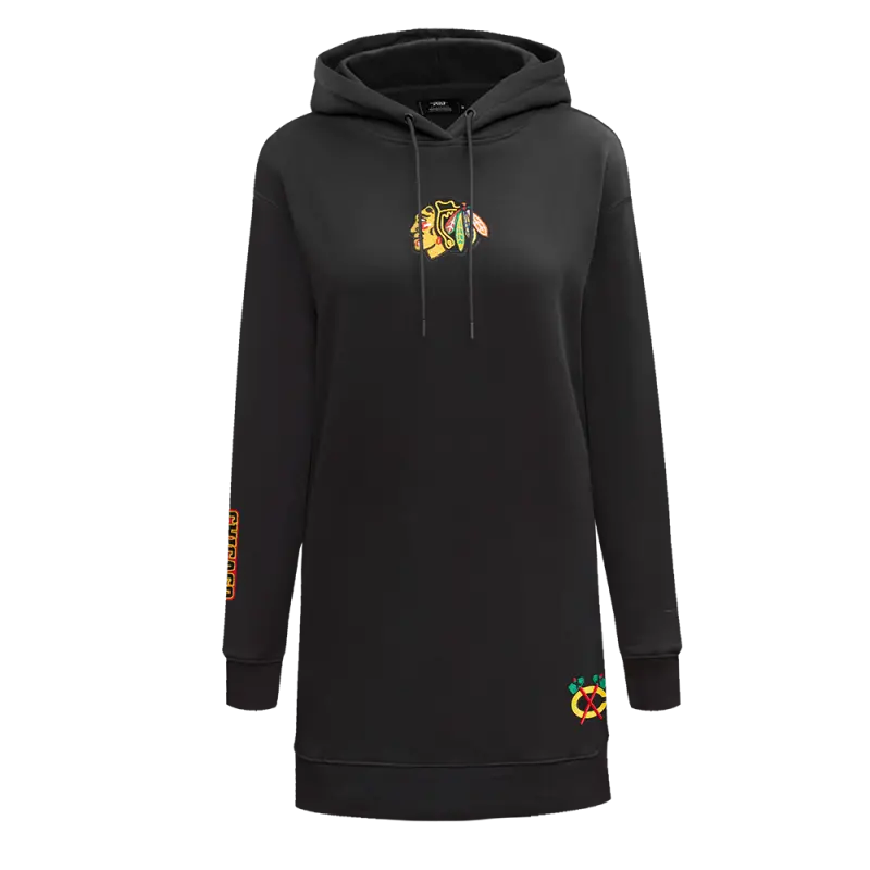 NHL CHICAGO BLACKHAWKS CLASSIC WOMEN’S FLC HOODIE DRESS (BLACK)