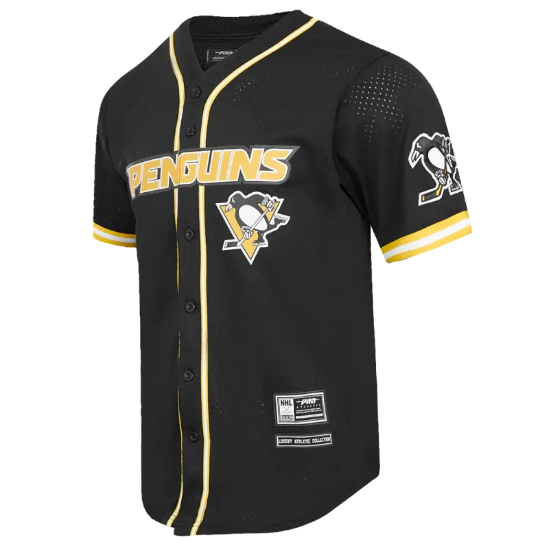 NHL PITTSBURGH PENGUINS CLASSIC MEN’S MESH BUTTON DOWN JERSEY (BLACK\/YELLOW)