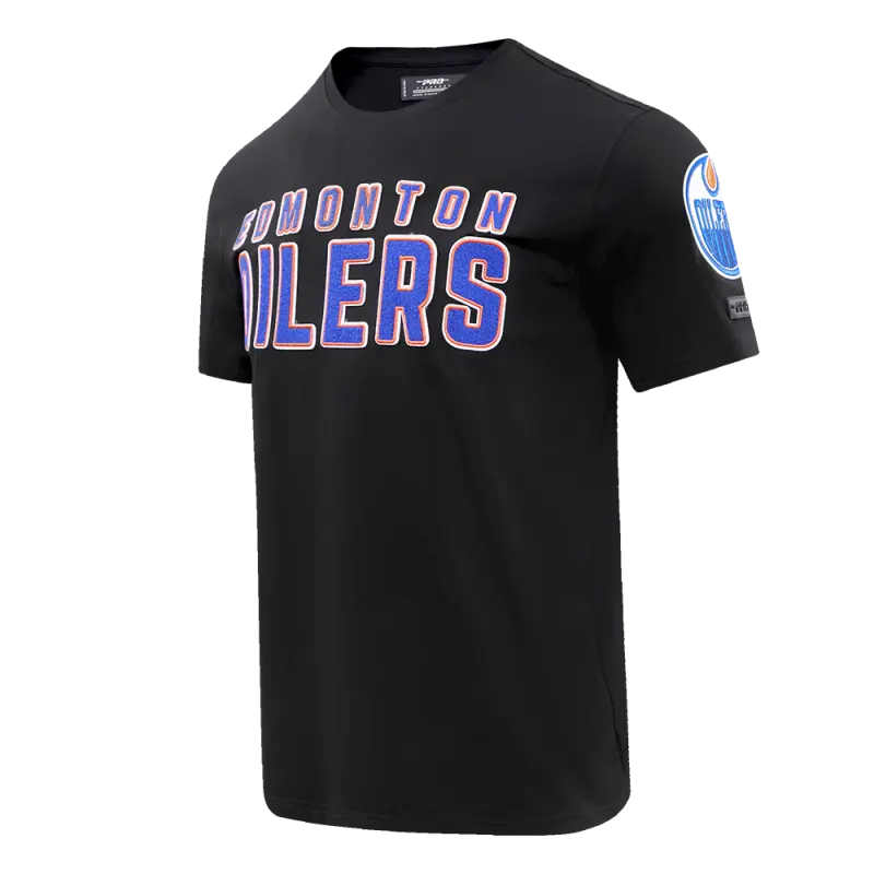 NHL EDMONTON OILERS CLASSIC CHENILLE MEN’S SINGLE JERSEY TEE (BLACK)