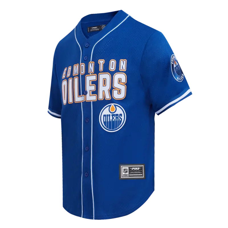NHL EDMONTON OILERS CLASSIC MESH MEN’S BUTTON DOWN SHIRT (DODGER BLUE)