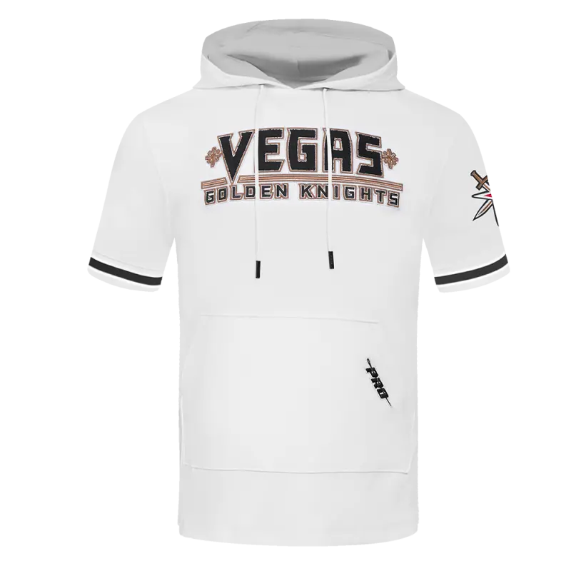 NHL VEGAS GOLDEN KNIGHTS CLASSIC CHENILLE MEN’S DOUBLE KNIT SHORT SLEEVE PULLOVER HOODIE (WHITE\/BLACK)