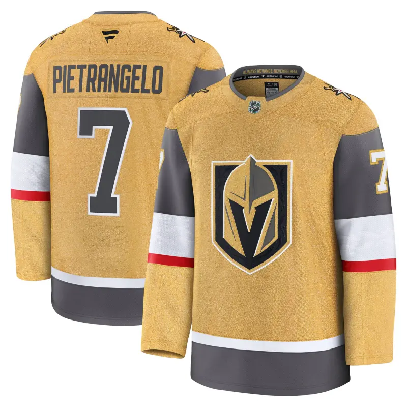 Vegas Golden Knights Fanatics Branded Home Premium Jersey – Gold – Alex Pietrangelo – Mens