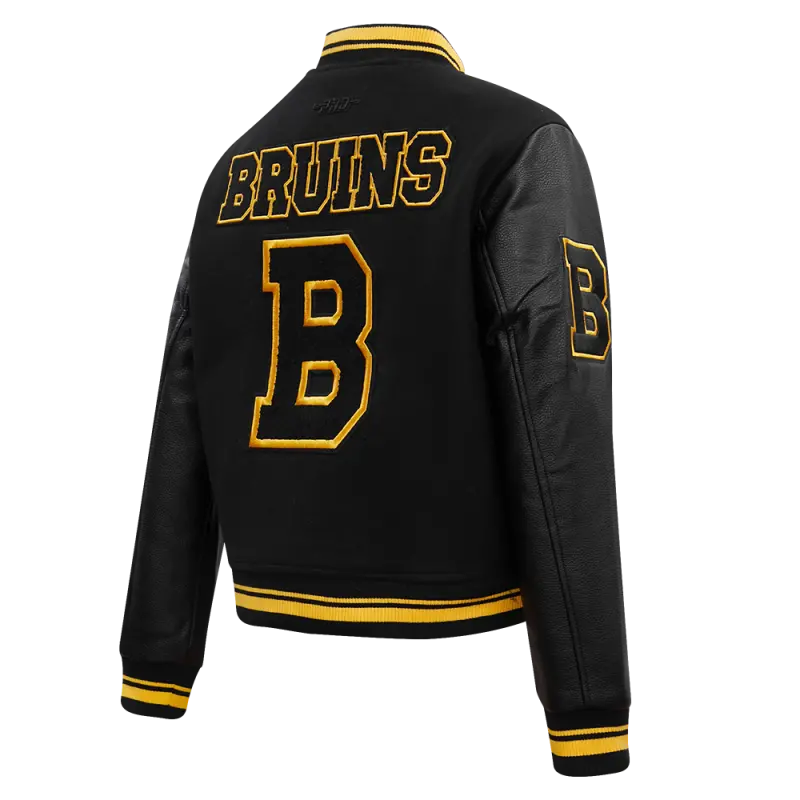 NHL BOSTON BRUINS RETRO CLASSIC WOMEN’S RIB WOOL VARSITY JACKET (BLACK\/YELLOW)