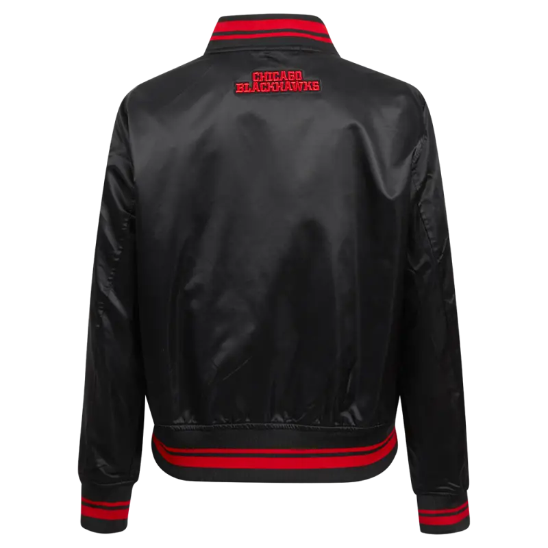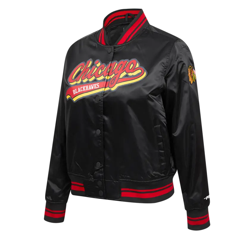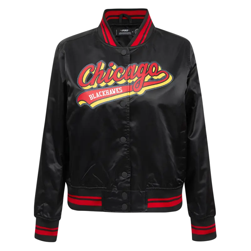 Home / Shop / JACKETS / NHL CHICAGO BLACKHAWKS SCRIPT TAIL WOMEN’S SATIN JACKET (BLACK\/RED\/BLACK)